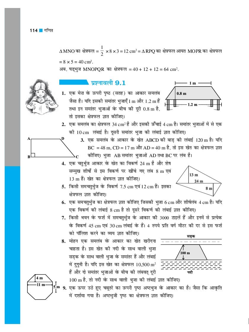 यह रहा कक्षा 8 गणित के लिए नई एनसीईआरटी पाठ्यपुस्तक से अध्याय 9 क्षेत्रमिति।