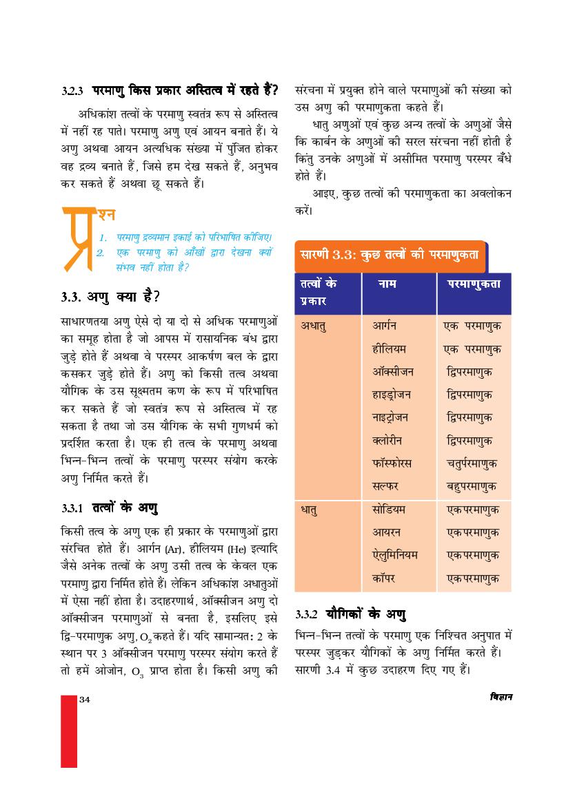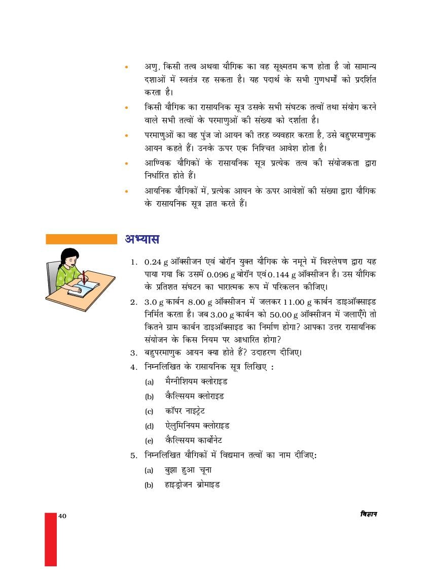 एनसीईआरटी पुस्तक कक्षा 9 विज्ञान अध्याय 3 परमाणु एवं अणु