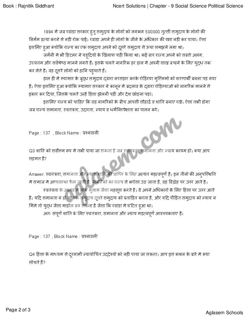 एनसीईआरटी समाधान कक्षा 11 राजनीति विज्ञान अध्याय 9 (NCERT Solutions for Class 11 Political Science Chapter 9) अब aglasem द्वारा शांति के हर प्रश्नावली के लिए प्रस्तुत है। इसलिए आप यहा कक्षा 11 राजनीति विज्ञान अध्याय 9 प्रश्न उत्तर का pdf डाउनलोड कर सकते है। इस कक्षा 11 एनसीईआरटी राजनीति विज्ञान समाधान मे ग्यारहवीं क्लास की एनसीईआरटी की पुस्तक, जिसका नाम है राजनीतिक सिद्धांत, उसके पाठ 9 के सारे सवालों के जवाब हिन्दी मे लिखे है।