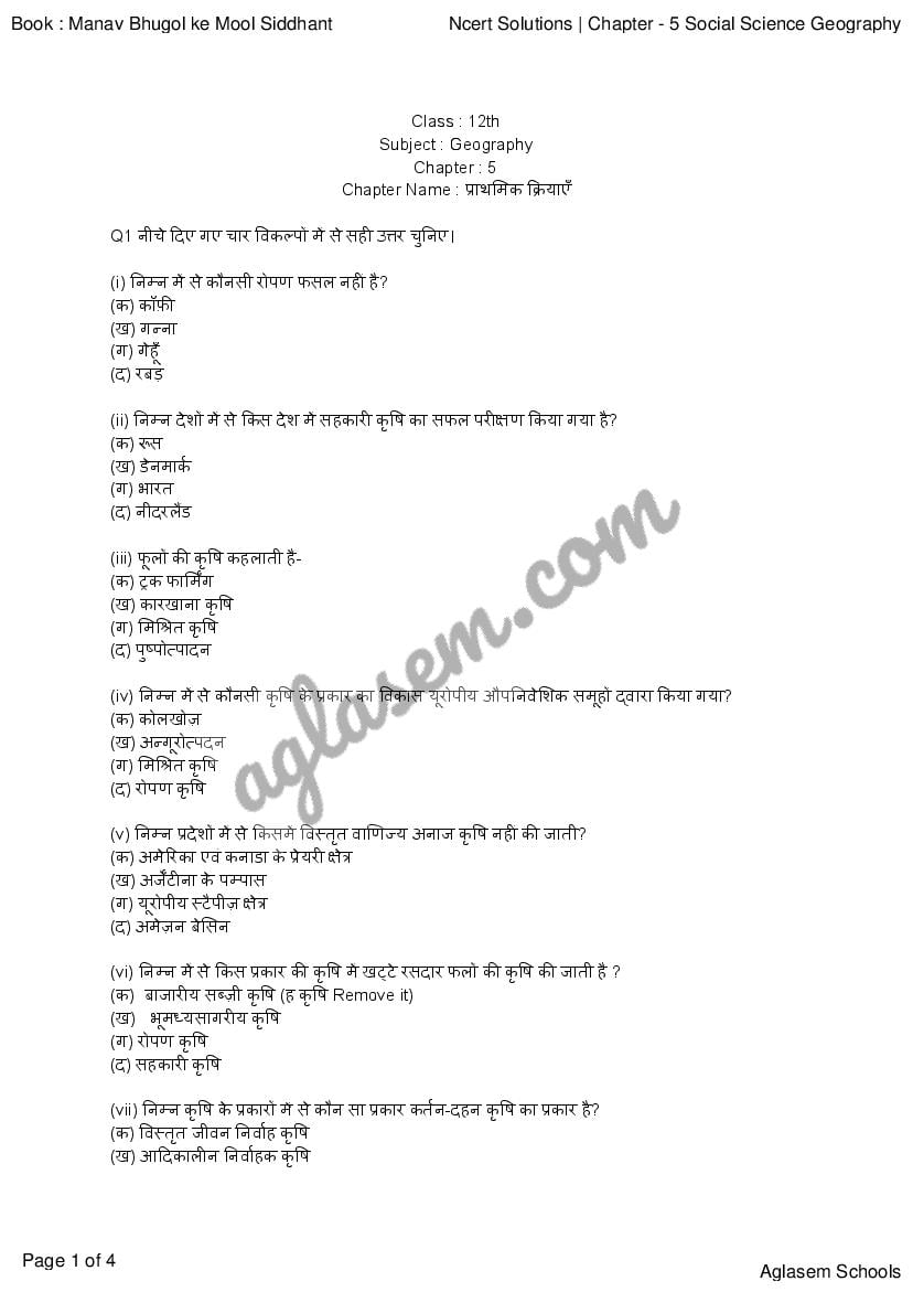 एनसीईआरटी समाधान कक्षा 12 भूगोल अध्याय 5 प्राथमिक क्रियाएँ PDF