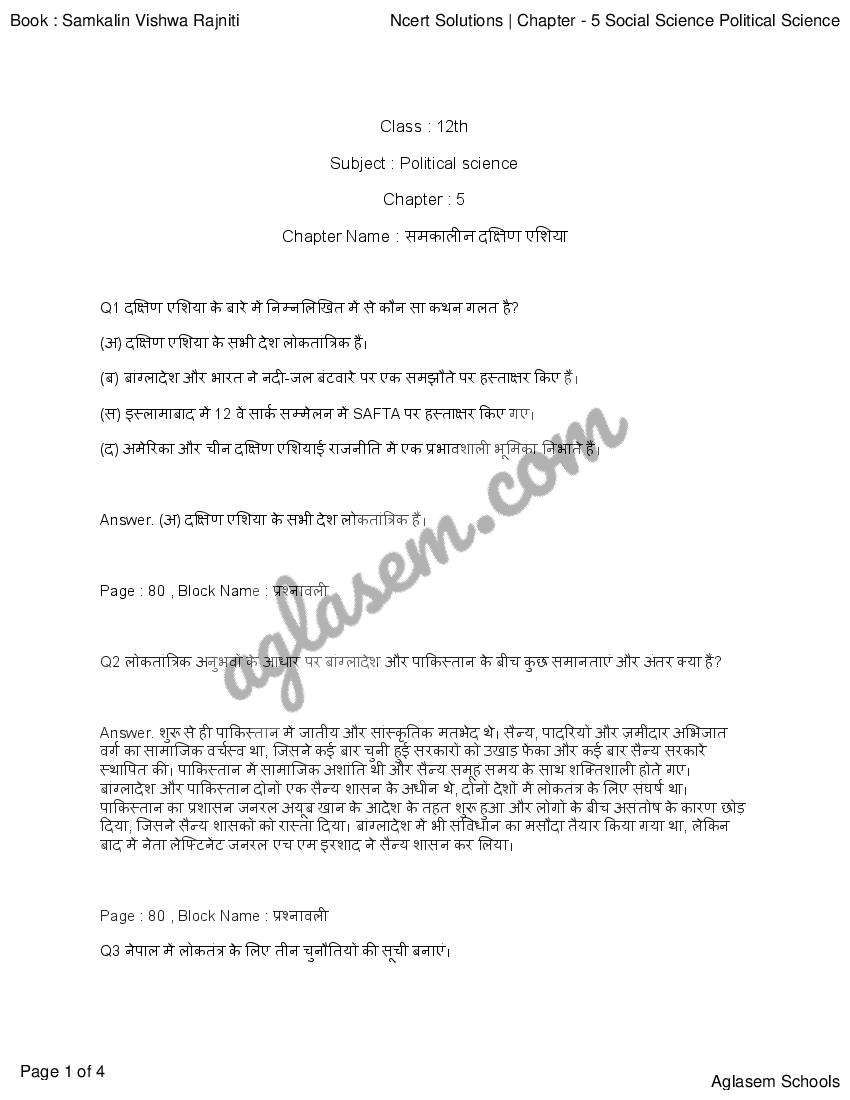 एनसीईआरटी समाधान कक्षा 12 राजनीति विज्ञान अध्याय 5 समकालीन दक्षिण एशिया
