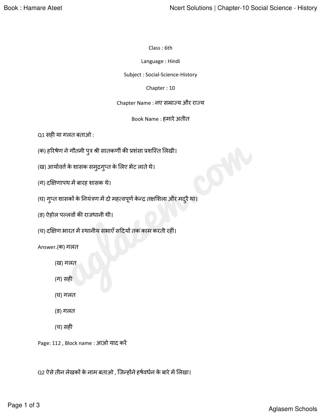 एनसीईआरटी समाधान कक्षा 6 सामाजिक विज्ञान अध्याय 10 (नए सम्राज्य और राज्य) PDF – डाउनलोड करने के लिए यहा क्लिक करे।