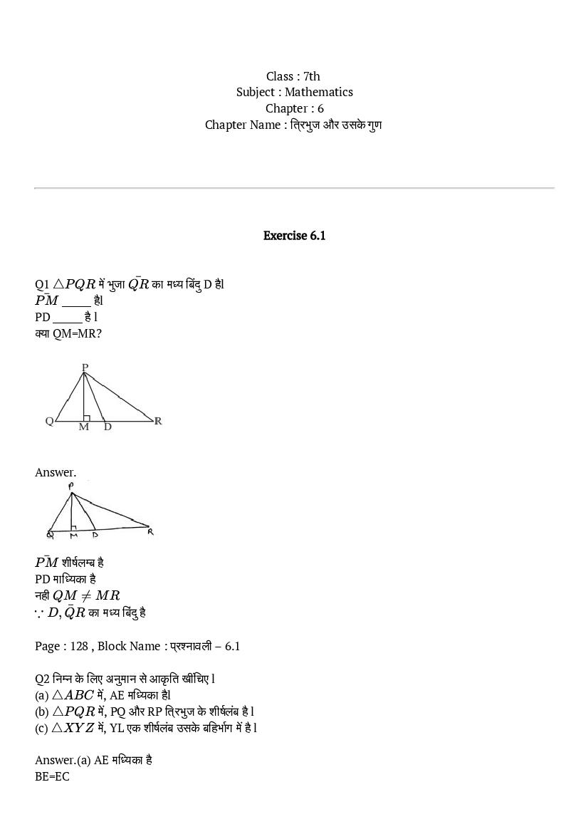 एनसीईआरटी समाधान कक्षा 7 गणित अध्याय 6 त्रिभुज एवं उसके गुण PDF
