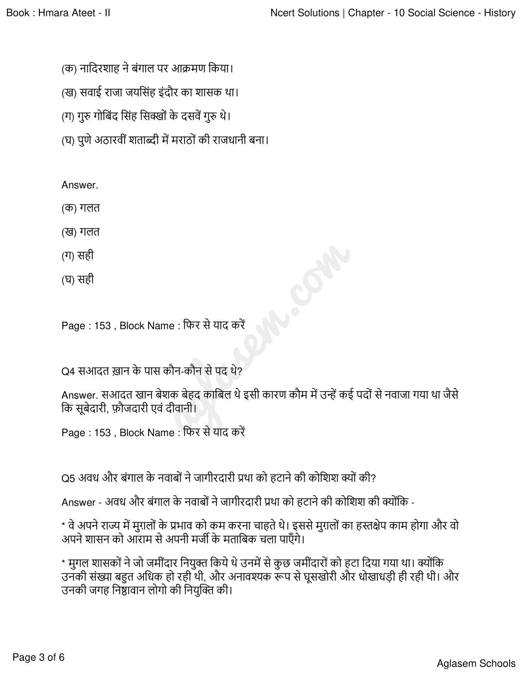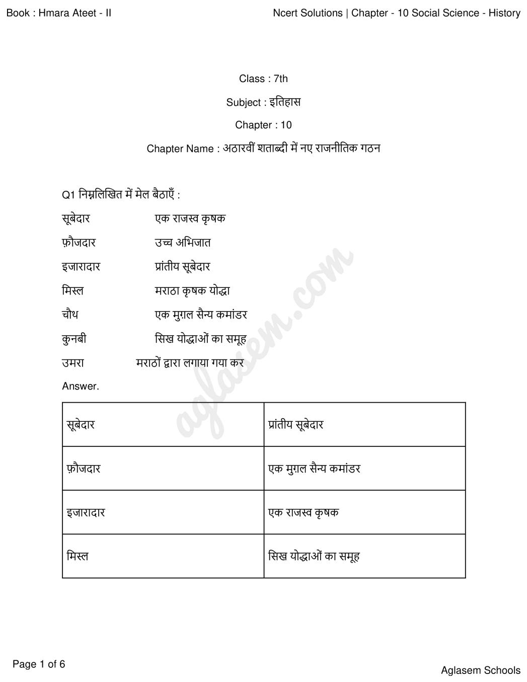 एनसीईआरटी समाधान कक्षा 7 सामाजिक विज्ञान अध्याय 10 अट्ठारवीं शताब्दी में नए राजनितिक गठन PDF