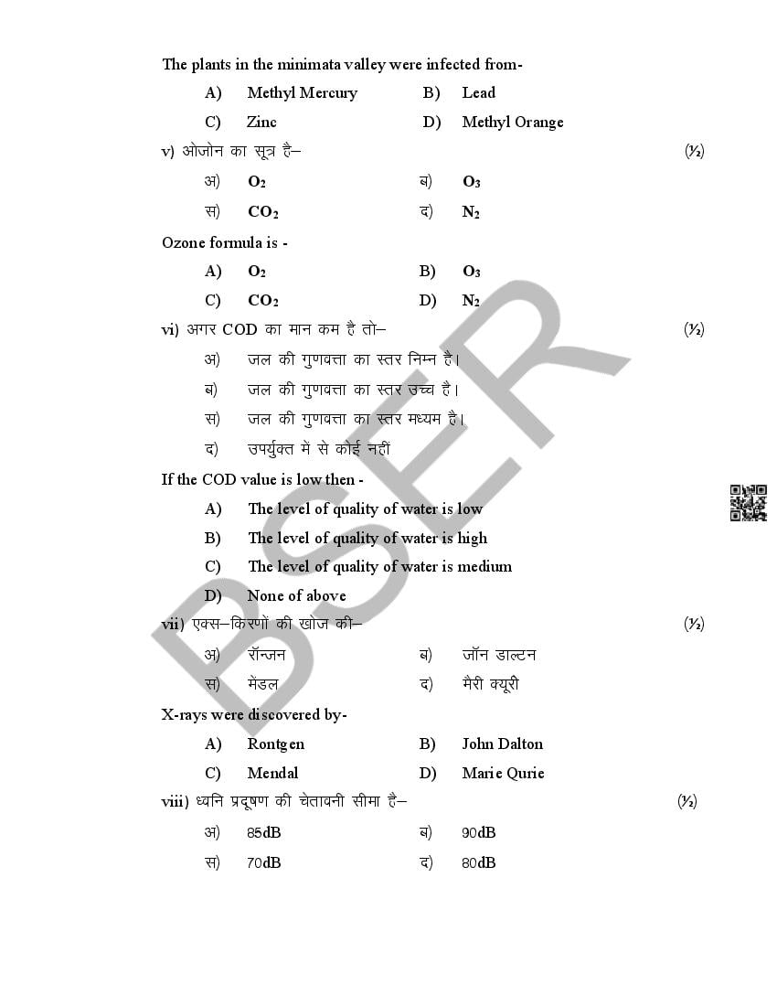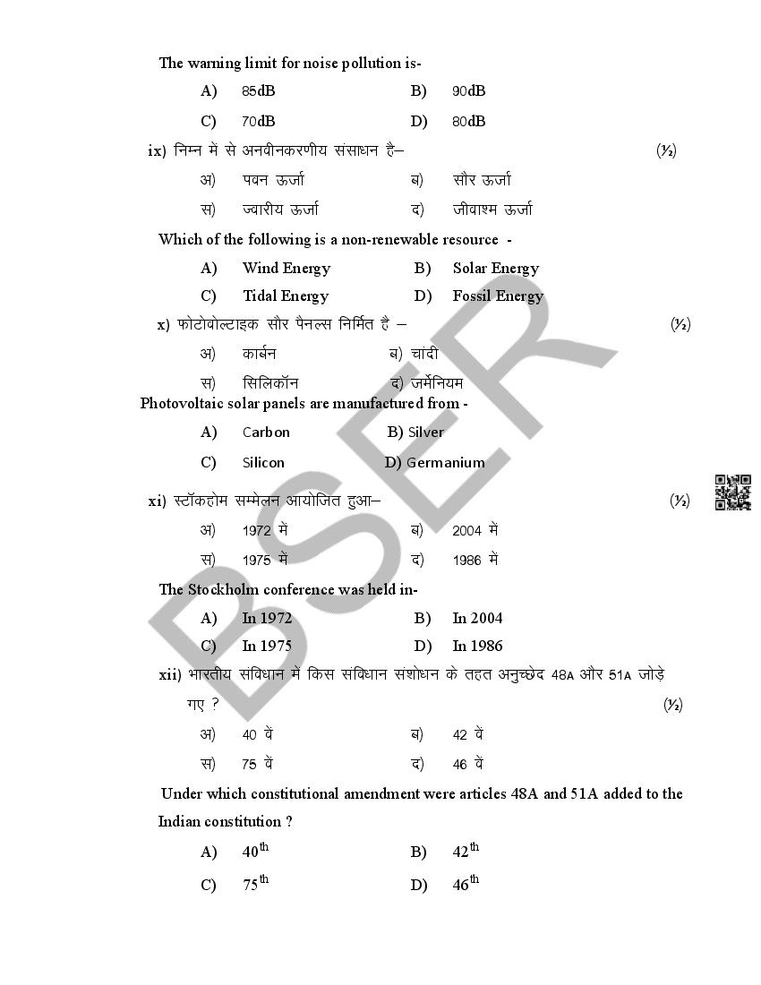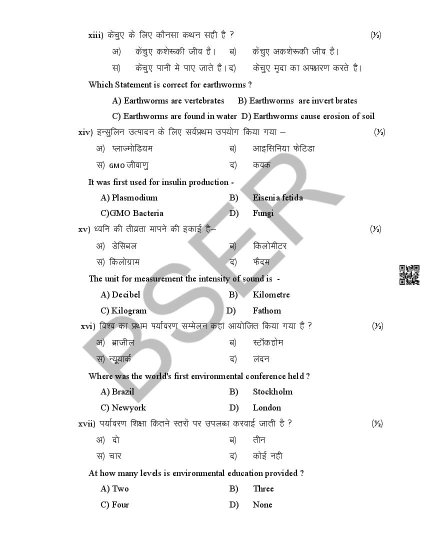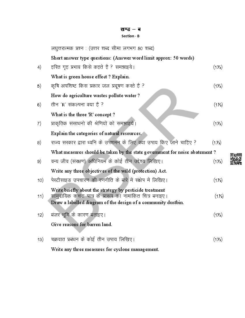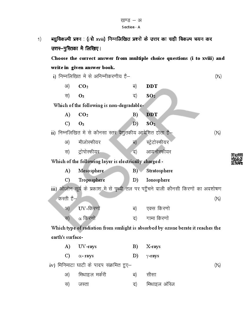 Rajasthan Board 12th Model Paper 2026 Environmental Science View Download