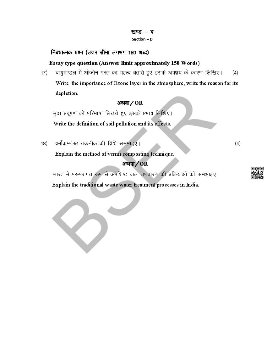 राजस्थान बोर्ड 12वीं पर्यावरण विज्ञान मॉडल पेपर 2026 PDF