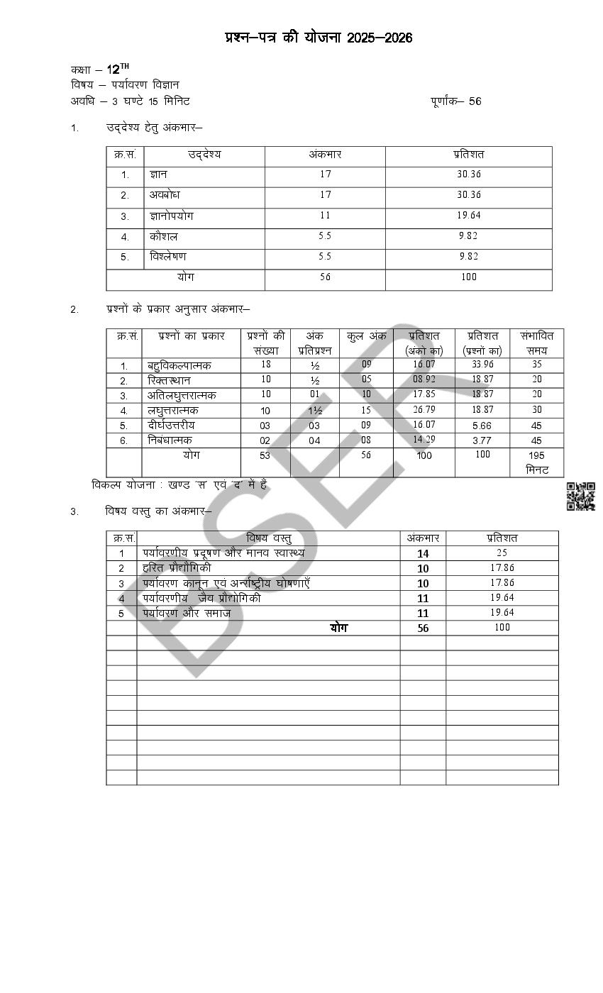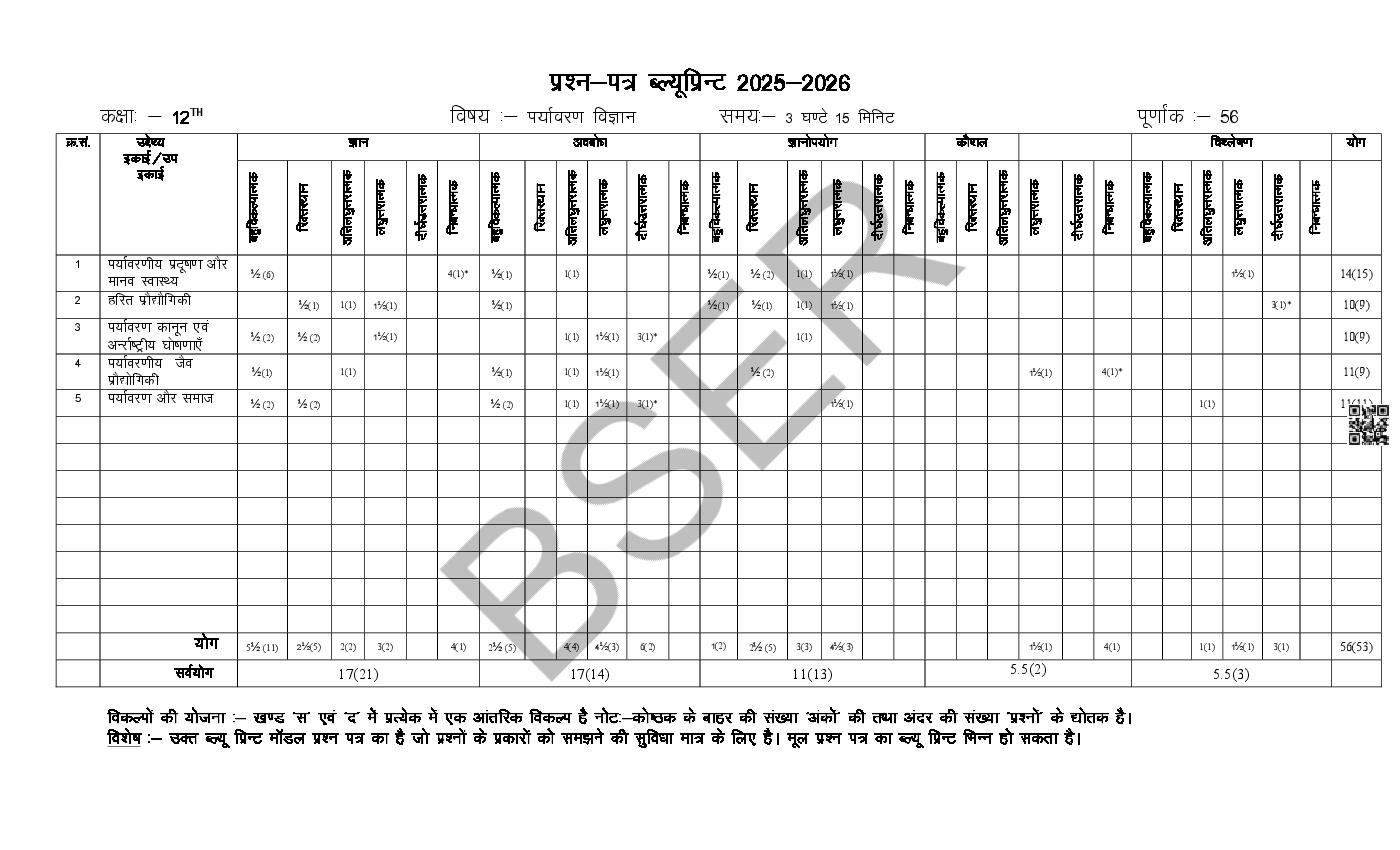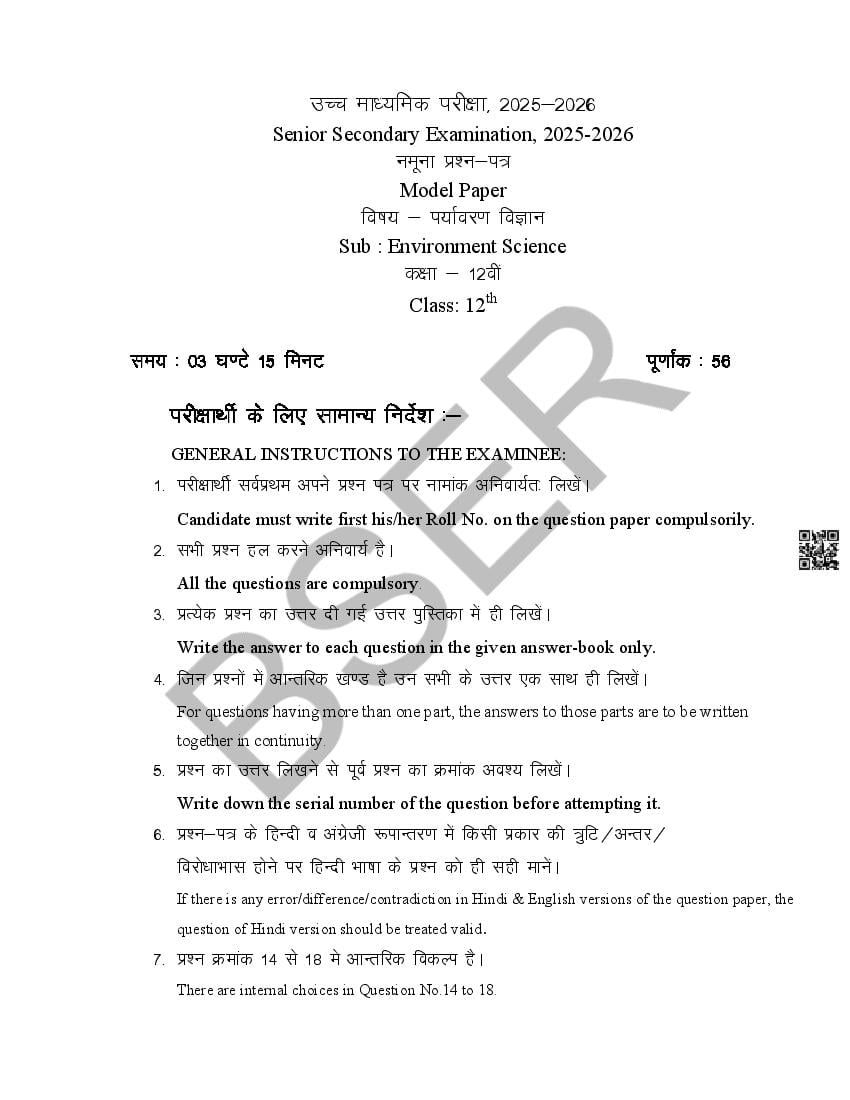 राजस्थान बोर्ड 12वीं पर्यावरण विज्ञान मॉडल पेपर 2026 – जरूरी बातें