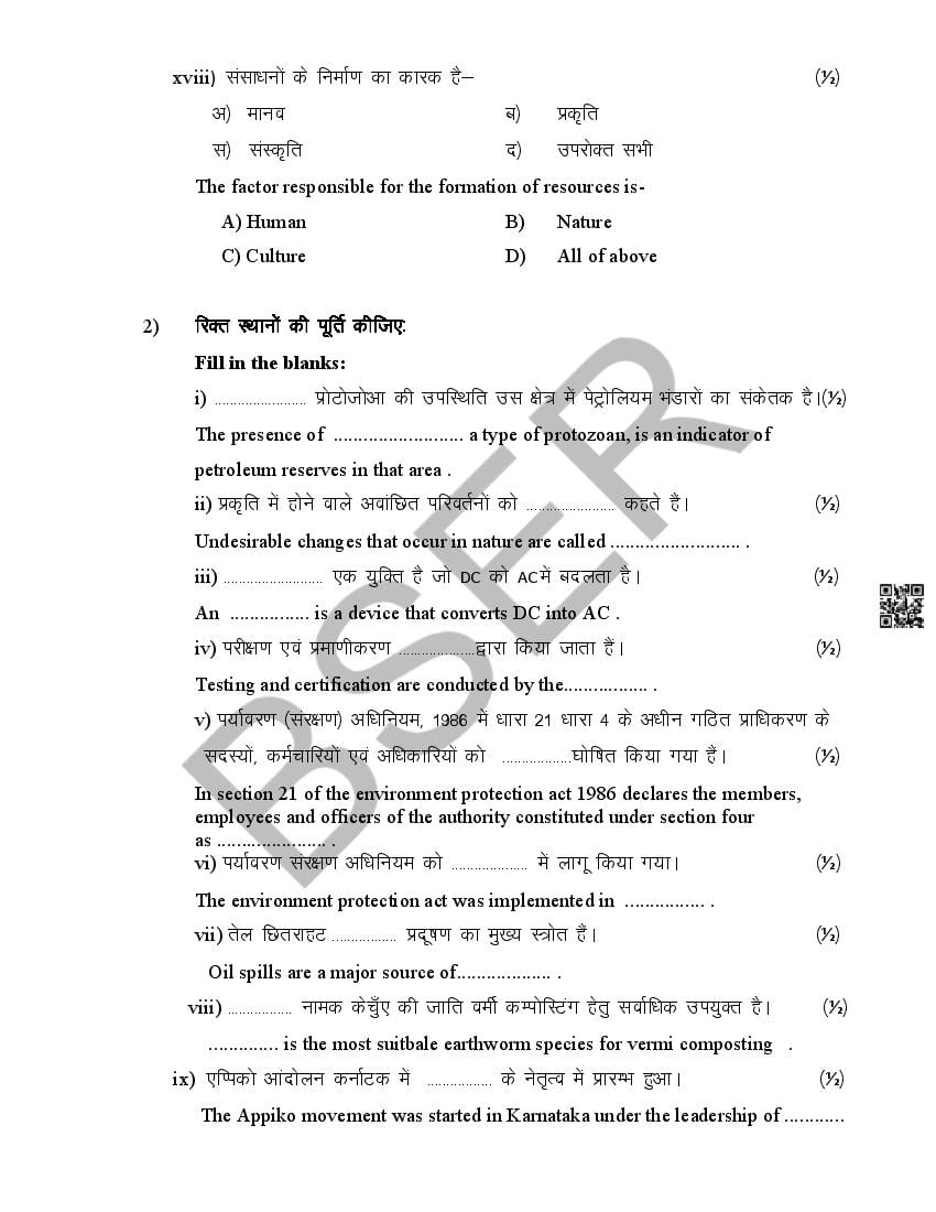| विषय | पर्यावरण विज्ञान (Environmental Studies) |