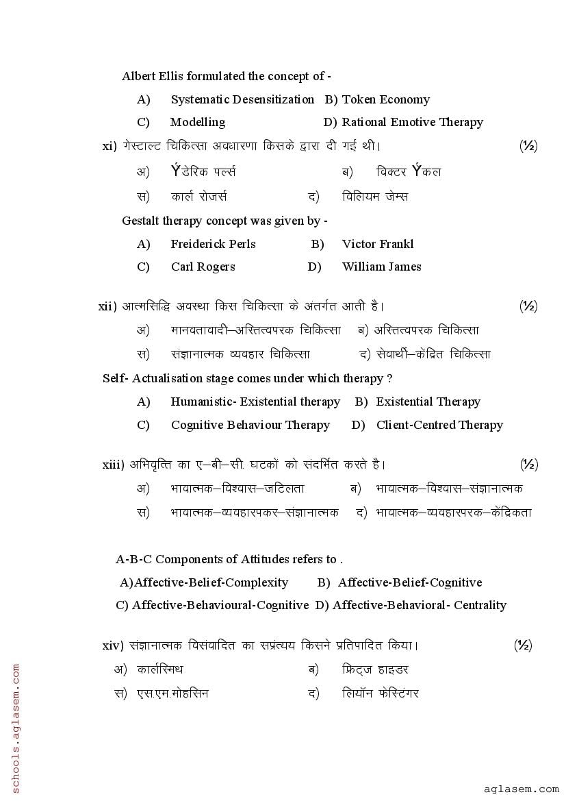 राजस्थान बोर्ड 12वीं मनोविज्ञान मॉडल पेपर 2025 अब आप डाउनलोड कर सकते है। अगर आप राजस्थान बोर्ड के विद्यार्थी है तथा कक्षा 12 मे पढ़ते है, तो यह मनोविज्ञान का सैम्पल पेपर आपके लिए बहुत उपयोगी है। इस मनोविज्ञान विषय के राजस्थान बोर्ड क्लास 12 मॉडल पेपर मे Psychology के नवीनतम पाठ्यक्रम से प्रश्न है ताकि आप आने वाले परीक्षा के लिए तैयारी कर सके। खुशी की बात यह है की अब आप RBSE Class 12 Psychology Model Question Paper PDF भी aglasem.com से डाउनलोड कर सकते है।