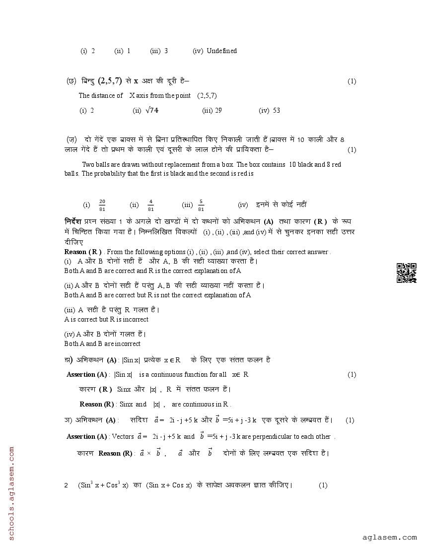 Uttarakhand Board Class 12 Sample Paper 2026 Maths View Download
