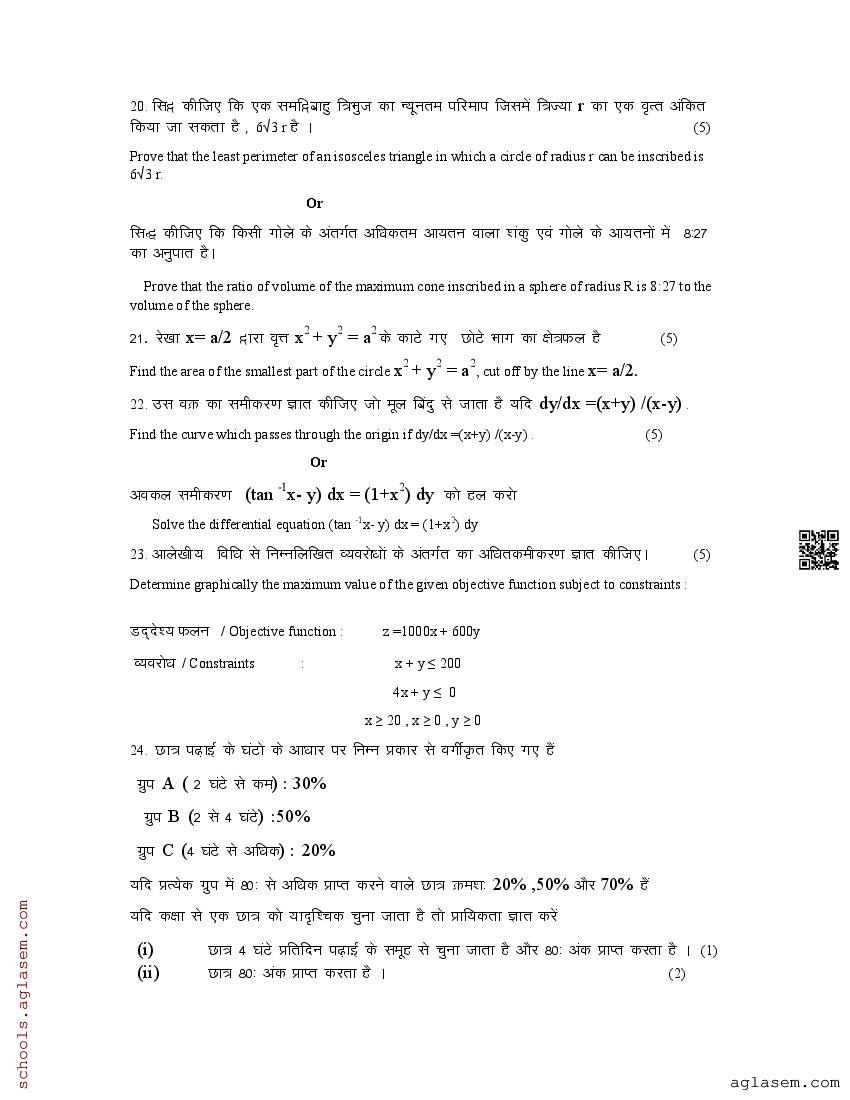 उत्तराखंड बोर्ड 12वीं गणित मॉडल पेपर 2026