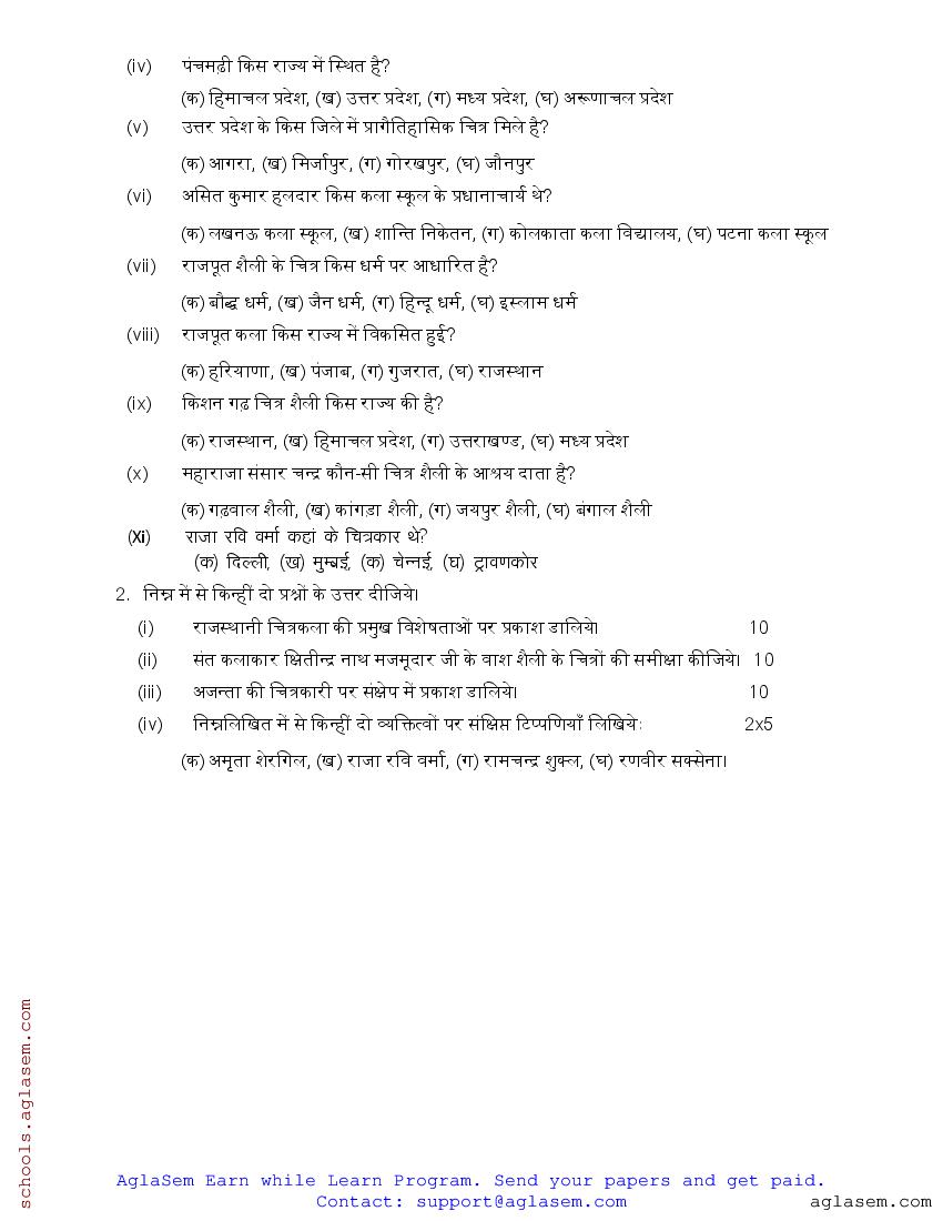 यदि आप यूपी बोर्ड कक्षा 12 के रिजल्ट 2025 मे उत्तीर्ण होना चाहते है, तो उत्तर प्रदेश बोर्ड 12वीं रंजन काला मॉडल पेपर (Uttar Pradesh Board 12th Ranjan Kala Model Paper) के साथ ही अपने हर विषय के यूपी बोर्ड 12वीं मॉडल पेपर (Uttar Pradesh Board Class 12 Model Paper) का हल करे:
